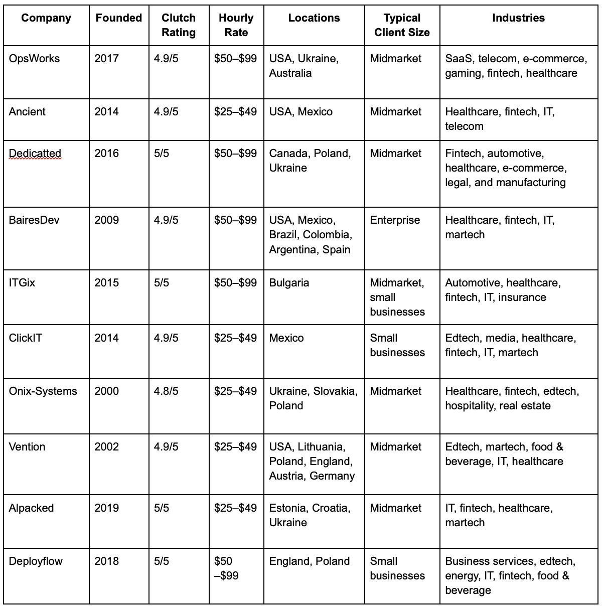 The companies on this list deliver exactly that: certified engineers, time zone alignment, and full infrastructure ownership at a fraction of the cost of local hiring.