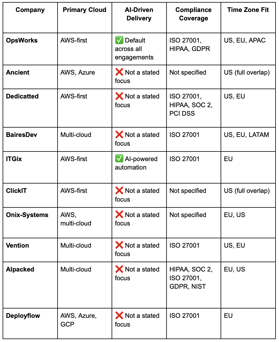 OpsWorks is a strong place to start that research. AWS-certified, AI-driven, and with a track record of measurable results across SaaS, fintech, and healthcare infrastructure.